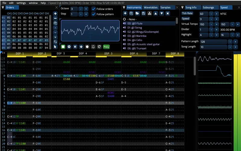 the biggest multi-system chiptune tracker ever made!featuresa multi-system chiptune tracker compatible with DefleMask modulesa large selection of sound chips:Yamaha FM chips:YM2151 (OPM)YM2203 (OPN)YM2413 (OPLL)YM2414 (OPZ) used in Yamaha TX81ZYM2608 (OPNA) used in PC-98YM2610 (OPNB) used in Neo GeoYM2610B (OPNB2)YM2612 (OPN2) used in Sega Genesis and FM TownsYM3526 (OPL) used in C64 Sound ExpanderYM3812 (OPL2)YMF262 (OPL3) with full 4-op support!Y8950 (OPL with ADPCM)ESS ESFM (like OPL3 but with more features)square wave chips:AY-3-8910/YM2149(F) used in several computers and game consolesCommodore VIC used in the VIC-20Microchip AY8930TI SN76489 used in Sega Master System, BBC Micro, and many othersPC SpeakerPhilips SAA1099 used in SAM CoupéOKI MSM5232 used in some arcade boardssample chips:SNESAmigaSegaPCM – all 16 channelsCapcom QSoundYamaha YMZ280B (PCMD8)Ricoh RF5C68 used in Sega CD and FM TownsOKI MSM6258 and MSM6295Konami K007232Konami K053260Irem GA20Ensoniq ES5506Namco C140Namco C219wavetable chips:HuC6280 used in PC EngineKonami Bubble System WSGKonami SCC/SCC+Namco arcade chips (WSG/C15/C30)WonderSwanSeta/Allumer X1-010Sharp SM8521 used in Tiger Game.comNES (Ricoh 2A03/2A07), with additional expansion sound support:Konami VRC6Konami VRC7MMC5Famicom Disk SystemSunsoft 5BNamco 163Family Noraebang (OPLL)SID (6581/8580) used in Commodore 64Mikey used in Atari LynxZX Spectrum beeperSFX-like engineQuadTone enginePokémon MiniCommodore PETTED used in Commodore Plus/4Casio PV-1000TIA used in Atari 2600including software tuning engine (TIunA)POKEY used in Atari 8-bit computersGame Boyincluding SOFTWARE ENVELOPES (zombie mode)Virtual BoyGame Boy AdvanceDMA (direct memory access) two channel modeMinMod software driver by Natt AkumaNintendo DSmodern/fantasy:Commander X16 VERAtildearrow Sound UnitPowerNoiseBifurcatorSID2Generic PCM DACmix and match sound chips!over 200 ready to use presets from computers, game consoles and arcade boards……or create your own presets – up to 32 chips or a total of 128 channels!DefleMask compatibilityloads .dmf modules from all versions (beta 1 to 1.1.9)saves .dmf modules – both modern and legacyFurnace doubles as a module downgraderloads/saves .dmp instruments and .dmw wavetables as wellclean-room design (guesswork and ABX tests only, no decompilation involved)some bug/quirk implementation for increased playback accuracy through compatibility flagsVGM exportZSM export for Commander X16TIunA export for Atari 2600modular layout that you may adapt to your needsaudio file export – entire song, per chip or per channelquality emulation cores (Nuked, MAME, SameBoy, Mednafen PCE, NSFplay, puNES, reSID, Stella, SAASound, vgsound_emu and ymfm)wavetable synthesizeravailable on wavetable chipscreate complex sounds with ease – provide up to two wavetables, select an effect and let go!MIDI input supportadditional features:FM macros!negative octavesadvanced arp macrosarbitrary pitch samplessample loop pointsSSG envelopes and ADPCM-B in Neo Geopitchable OPLL drumsfull duty/cutoff range in C64full 16-channel SegaPCMability to change tempo mid-songdecimal tempo/tick ratemultiple sub-songs in a moduleper-channel oscilloscope with waveform centeringbuilt-in sample editorchip mixing settingsbuilt-in visualizer in pattern viewopen-source under GPLv2 or later.User Manual: